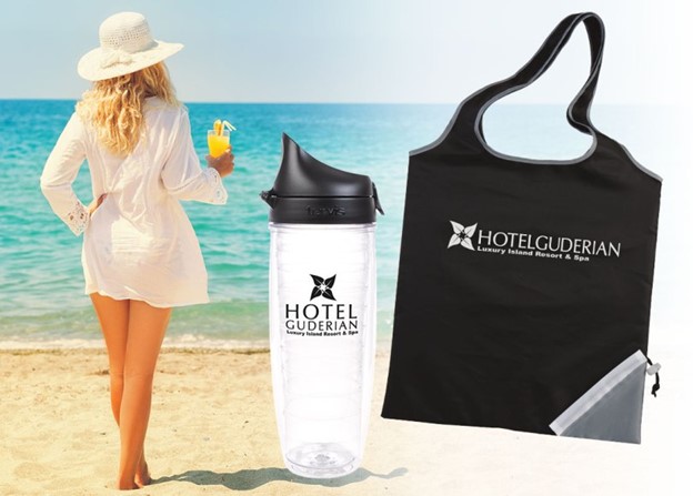 A resort wanted to make sure guests felt safe as they reopened after COVID-19 stay-at-home orders were lifted. At check-in, they chose to provide each guest with a Fold-Up Cinch Corner Tote to keep belongings together while enjoying the resort amenities and activities. They also provided a high-quality Tervis® Classic Sport Bottle – 24 oz. so guests could use their own drinkware for the duration of their stay. Both were imprinted with the resort logo and seasonal tagline.