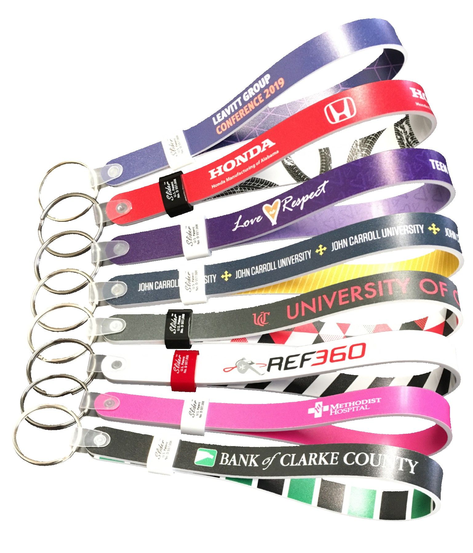 This flexible vinyl wristband key tag with a long loop is perfect for your keys or school IDs! 0.5" W x 11.625" L